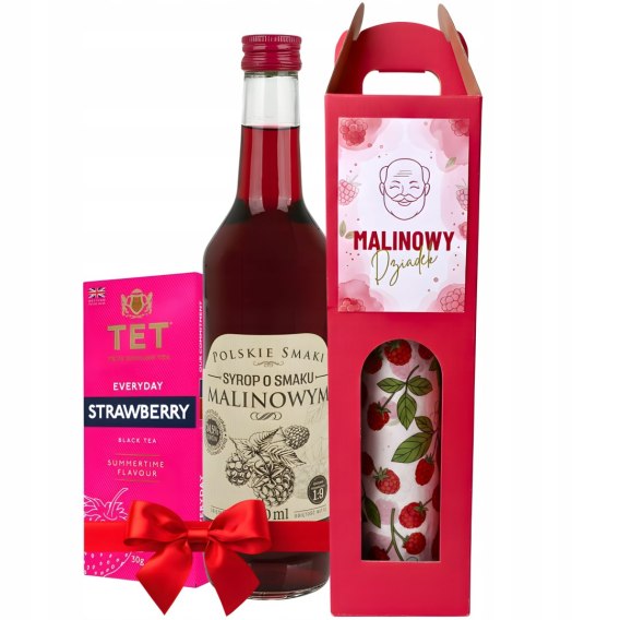 ZESTAW PREZENTOWY Z OKAZJI DNIA BABCI I DZIADKA SYROP MALINOWY HERBATA TET